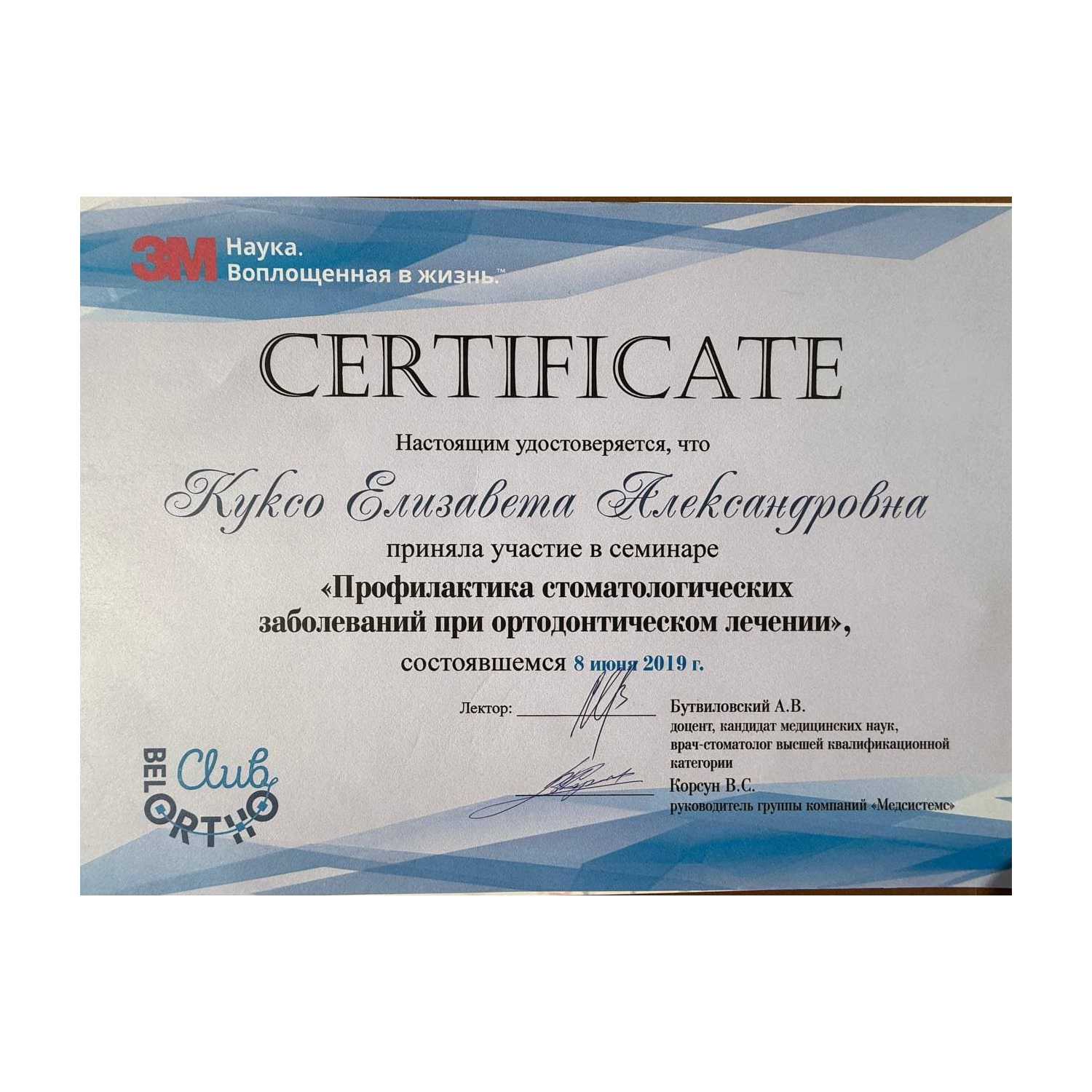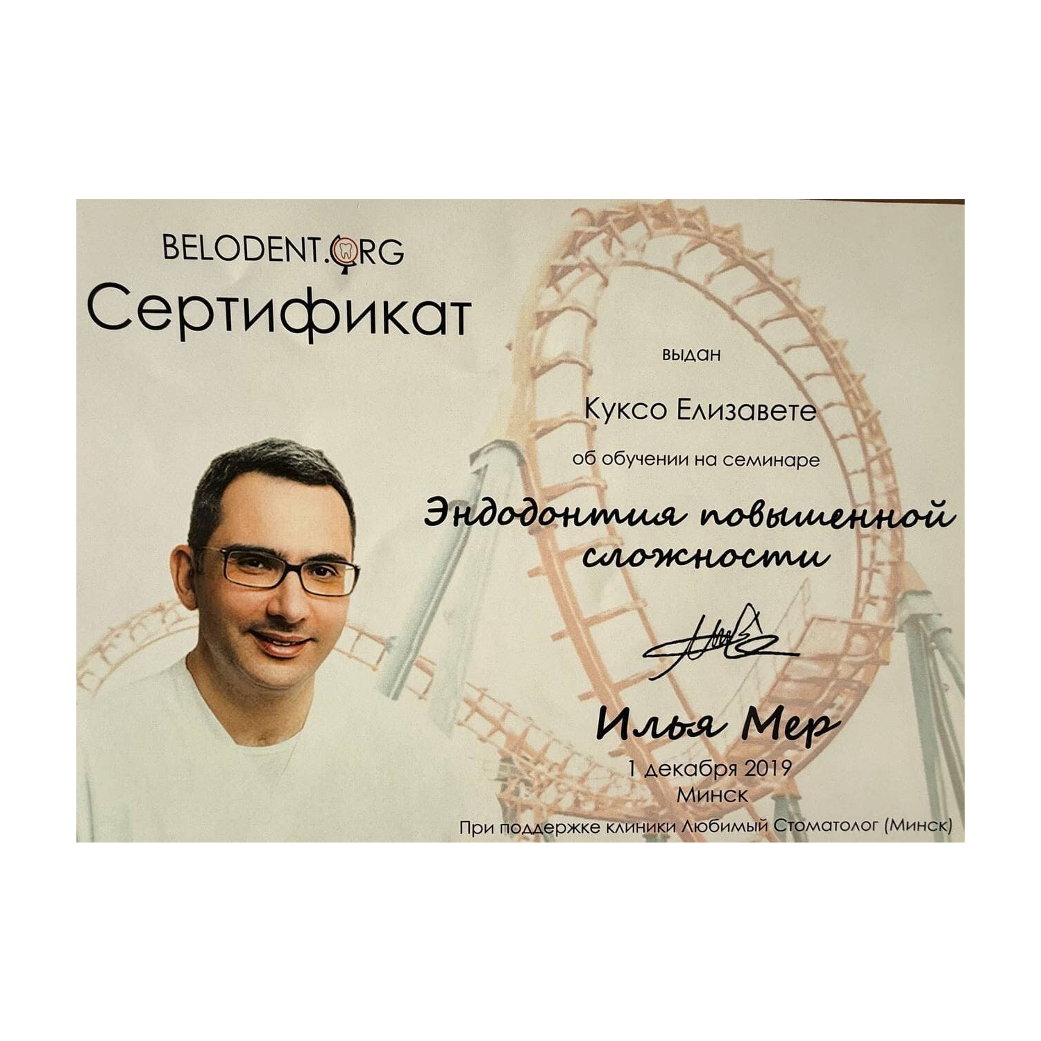 In 2016, Elizaveta Kukso graduated from the Belarusian State Medical University. Completed advanced training courses: