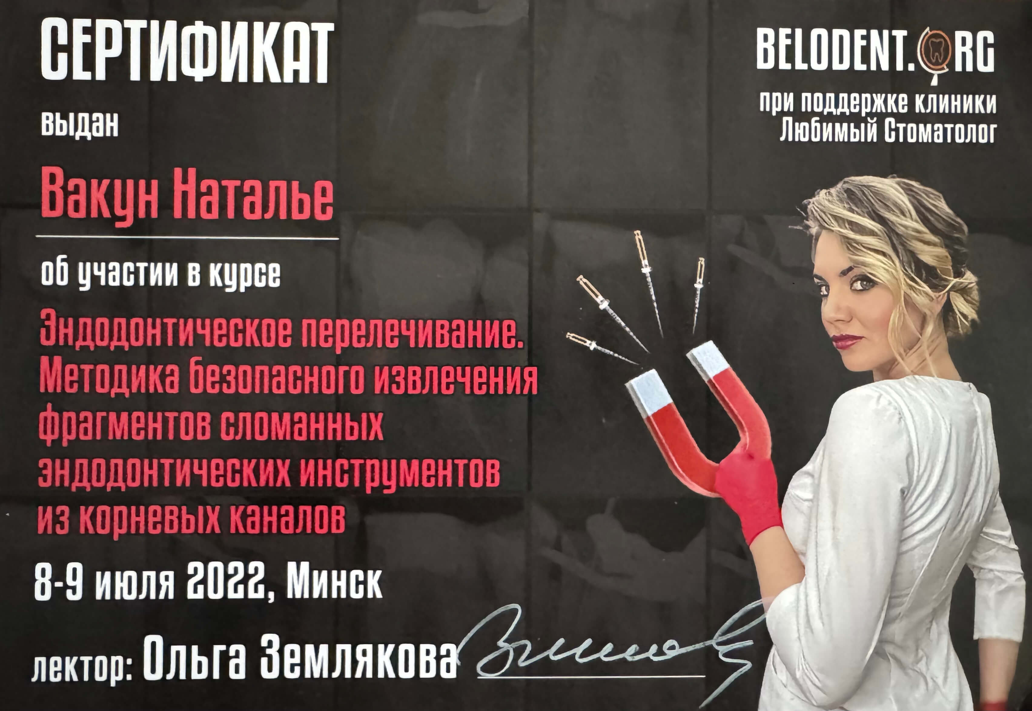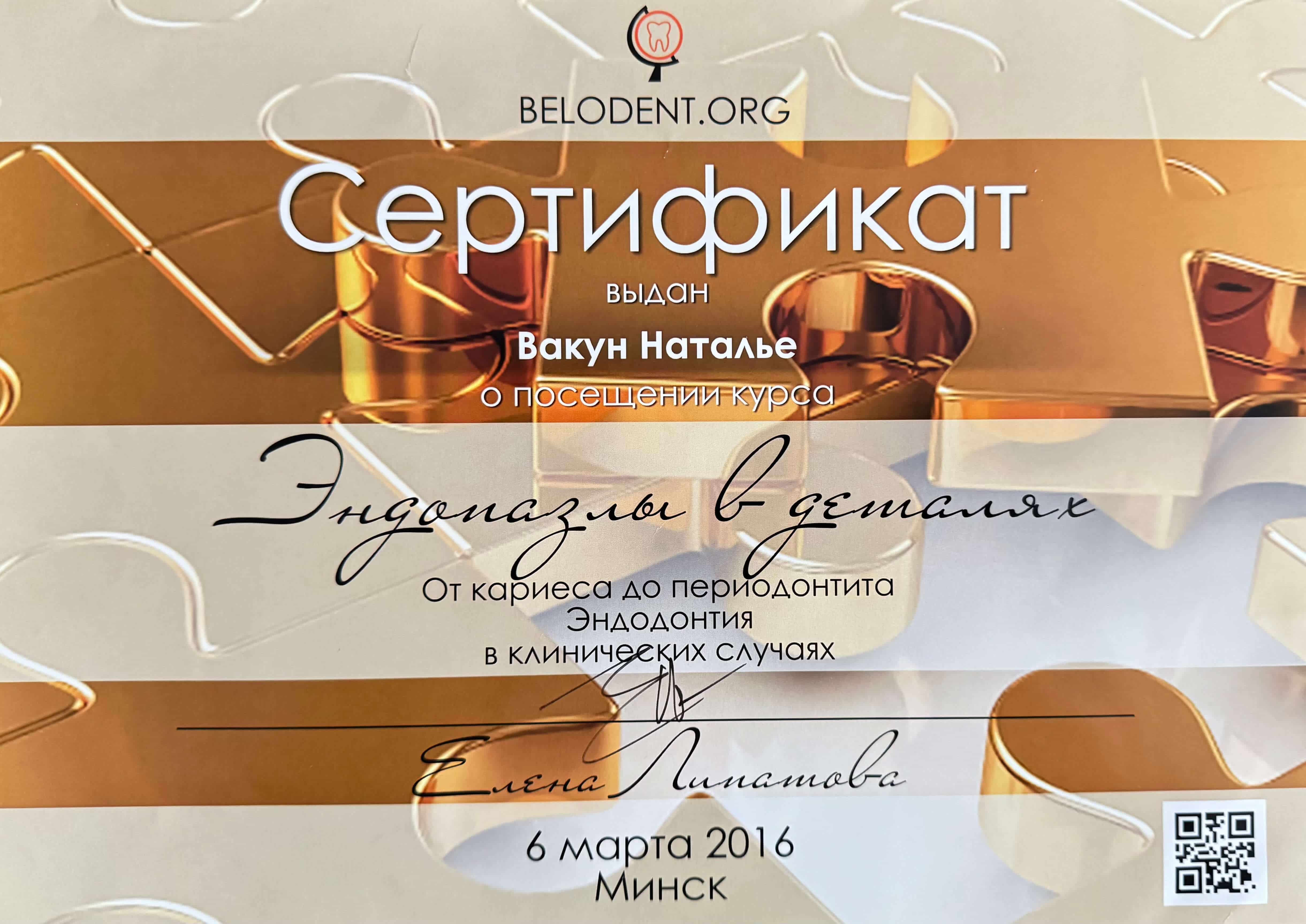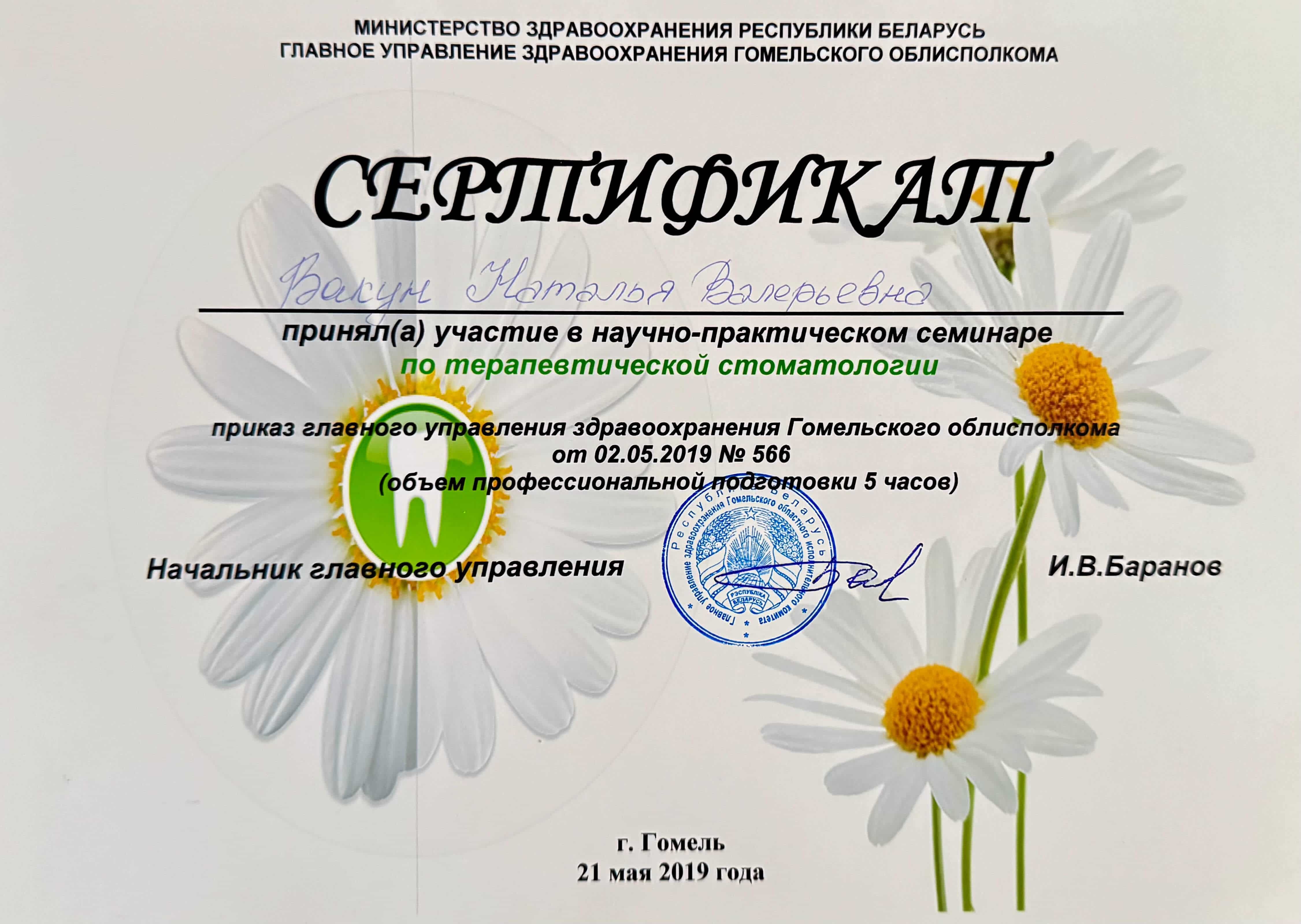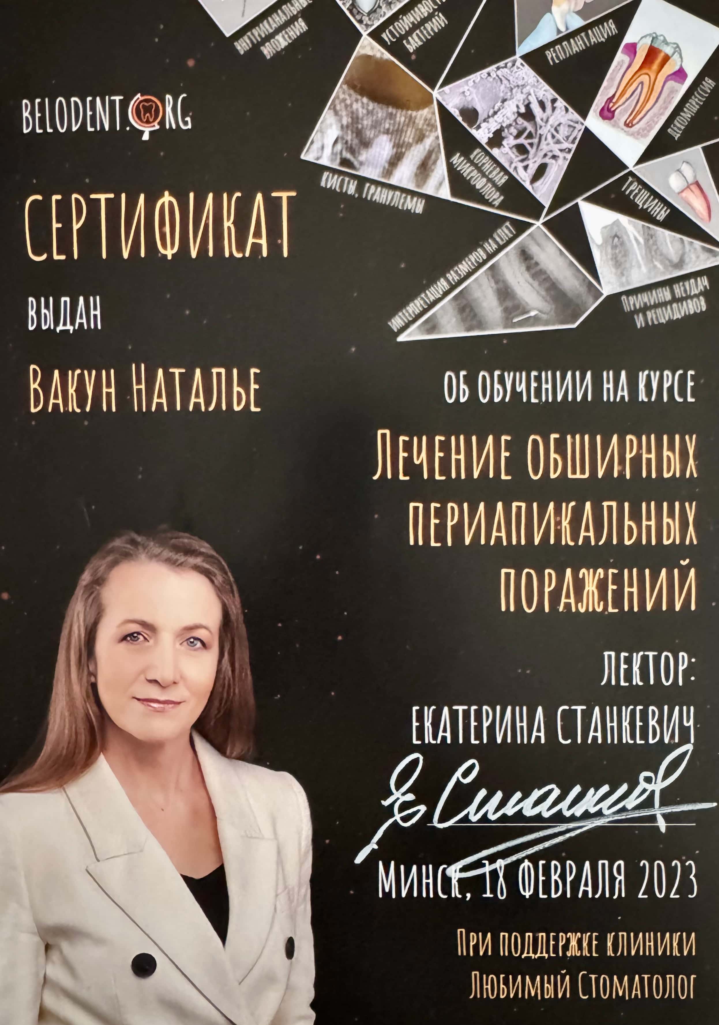 Записаться на консультациюВакун Наталья Валерьевна — опытнейший врач стоматолог-терапевт со стажем 25 лет, постоянно повышающая свою квалификацию и применяющая на практике актуальные методики и технологии, инструменты и материалы терепевтической стоматологии в Беларуси.